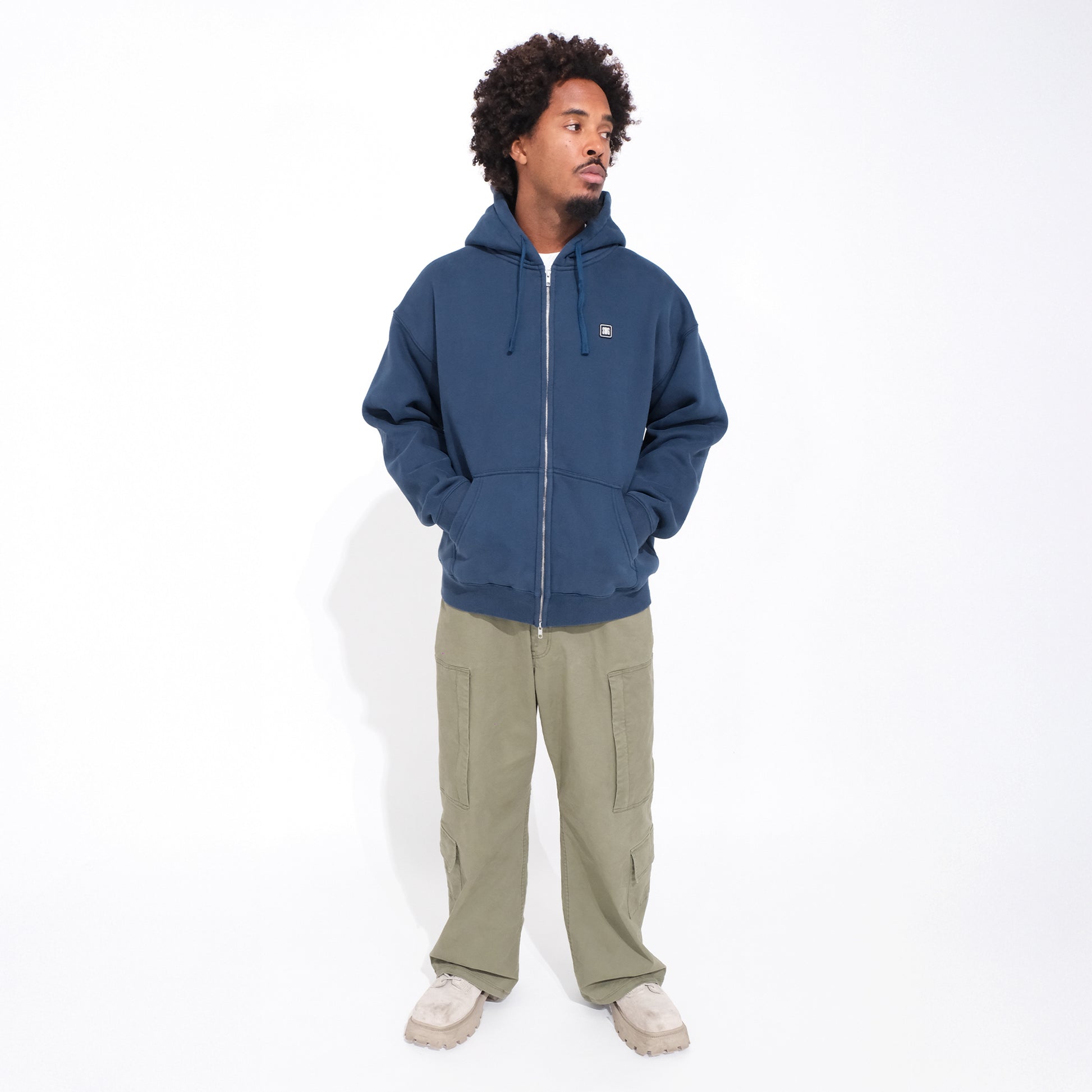シンプルなモチーフで着回し使いがしやすいジップアップフーディー。