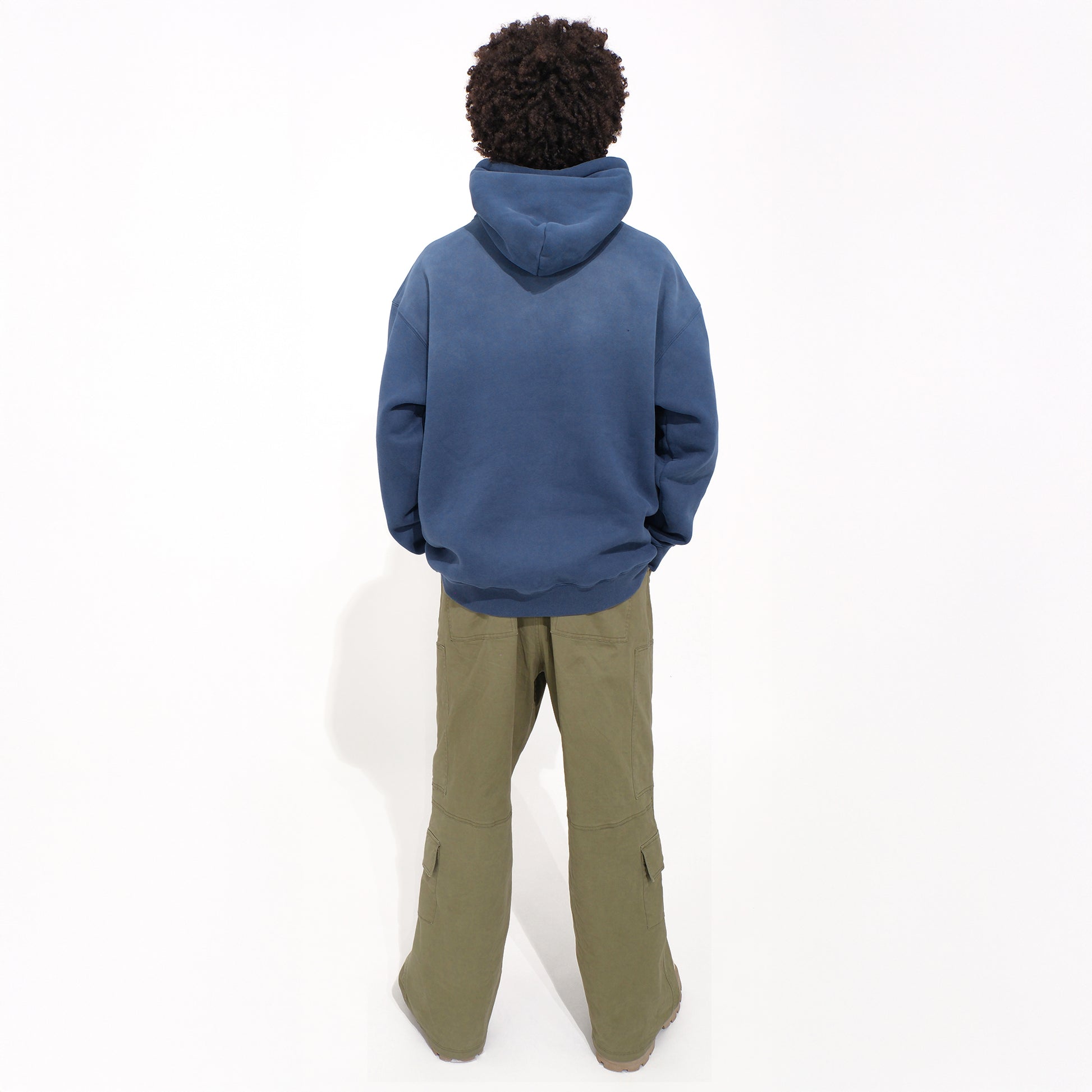 しっかりとした生地にウォッシュ加工を施し、穿き込むほどに深みのある風合いへと変化。8つのポケット(スラッシュポケット、太ももジップポケット、裾のフラップポケット〈ボタン仕様〉、バックポケット)が高い収納力と立体的なフォルムを生み出し、アクティブで存在感のあるシルエットを演出します。