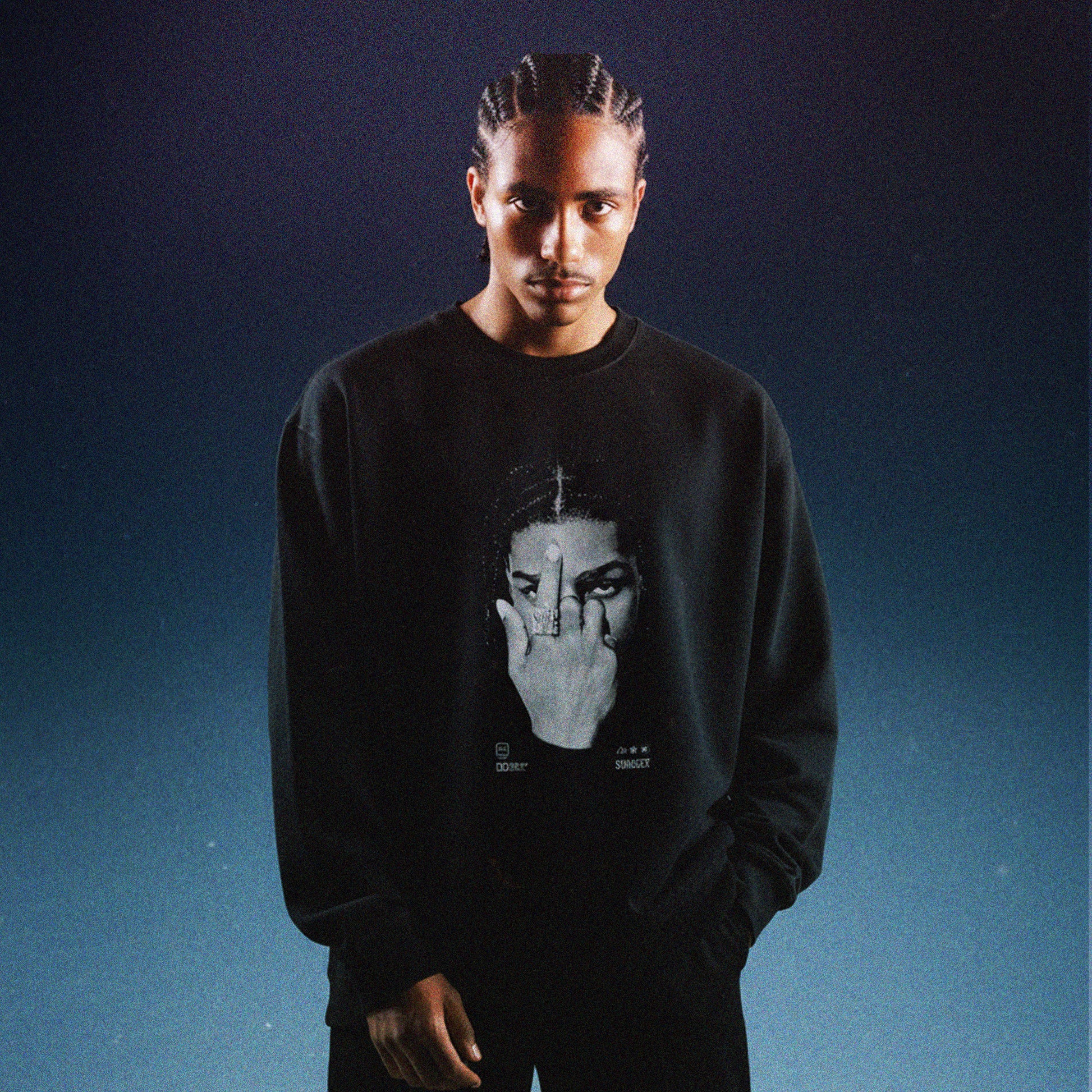 Relaxed silhouette. Crafted from heavyweight 8.5oz fabric. The wide neckline is designed to prevent stretching and distortion. The front is accented with a bold SWAGGER graphic print.