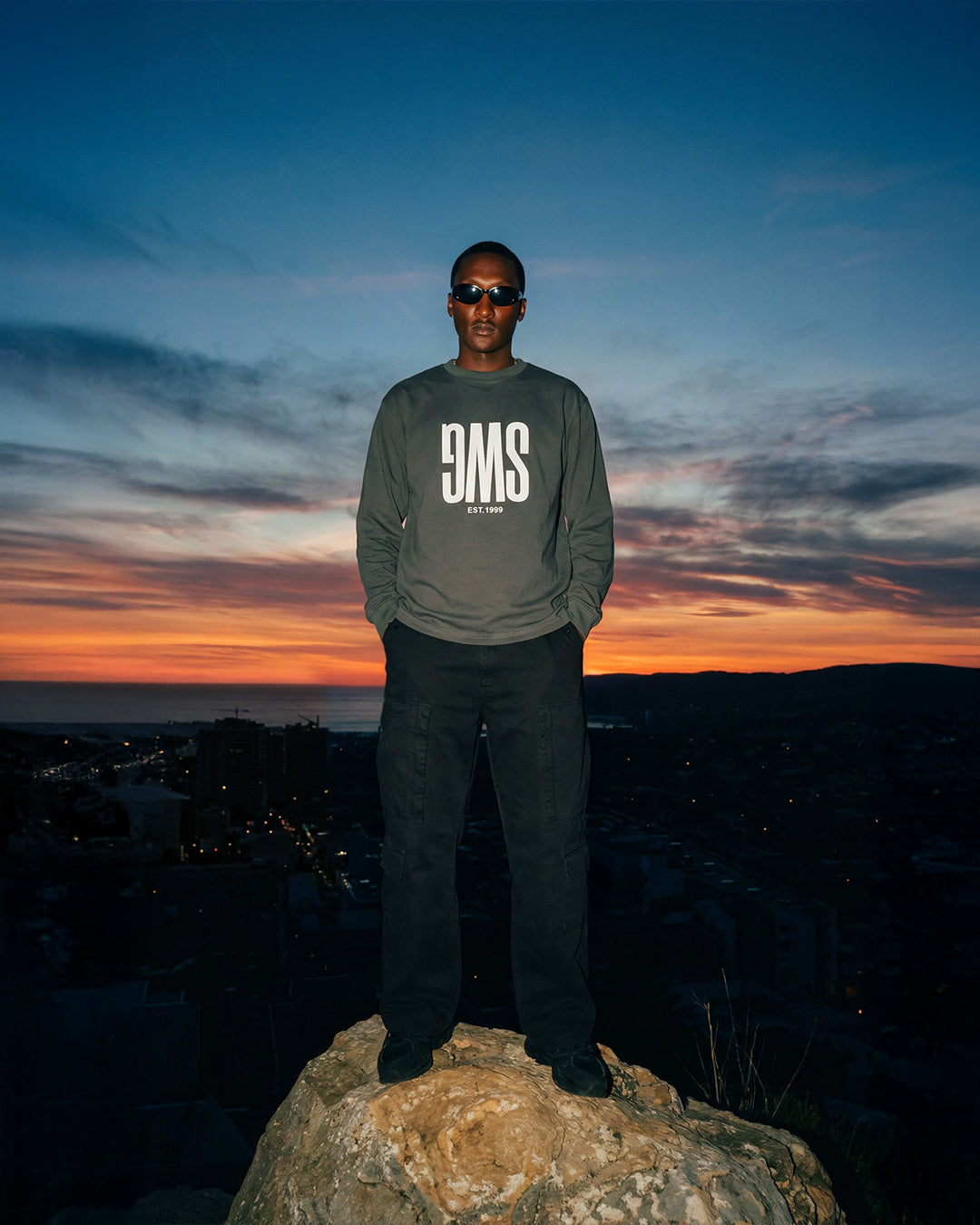 オープンエンド糸による独特のザラ感とドライな肌触りが、アメリカンTシャツを思わせるタフで無骨な印象を与えます。胸にはSWGロゴがプリントされています。